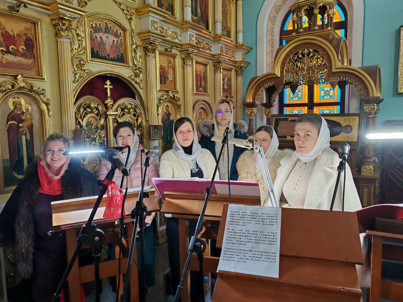 Богослужебные песнопения исполнил архиерейский молодёжный хор Казанского кафедрального собора под руководством Татьяны Александровны Медведевой.