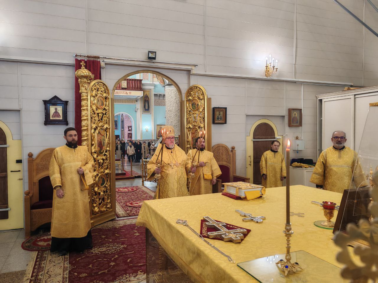 Его Высокопреосвященству сослужили клирики Казанского кафедрального собора: