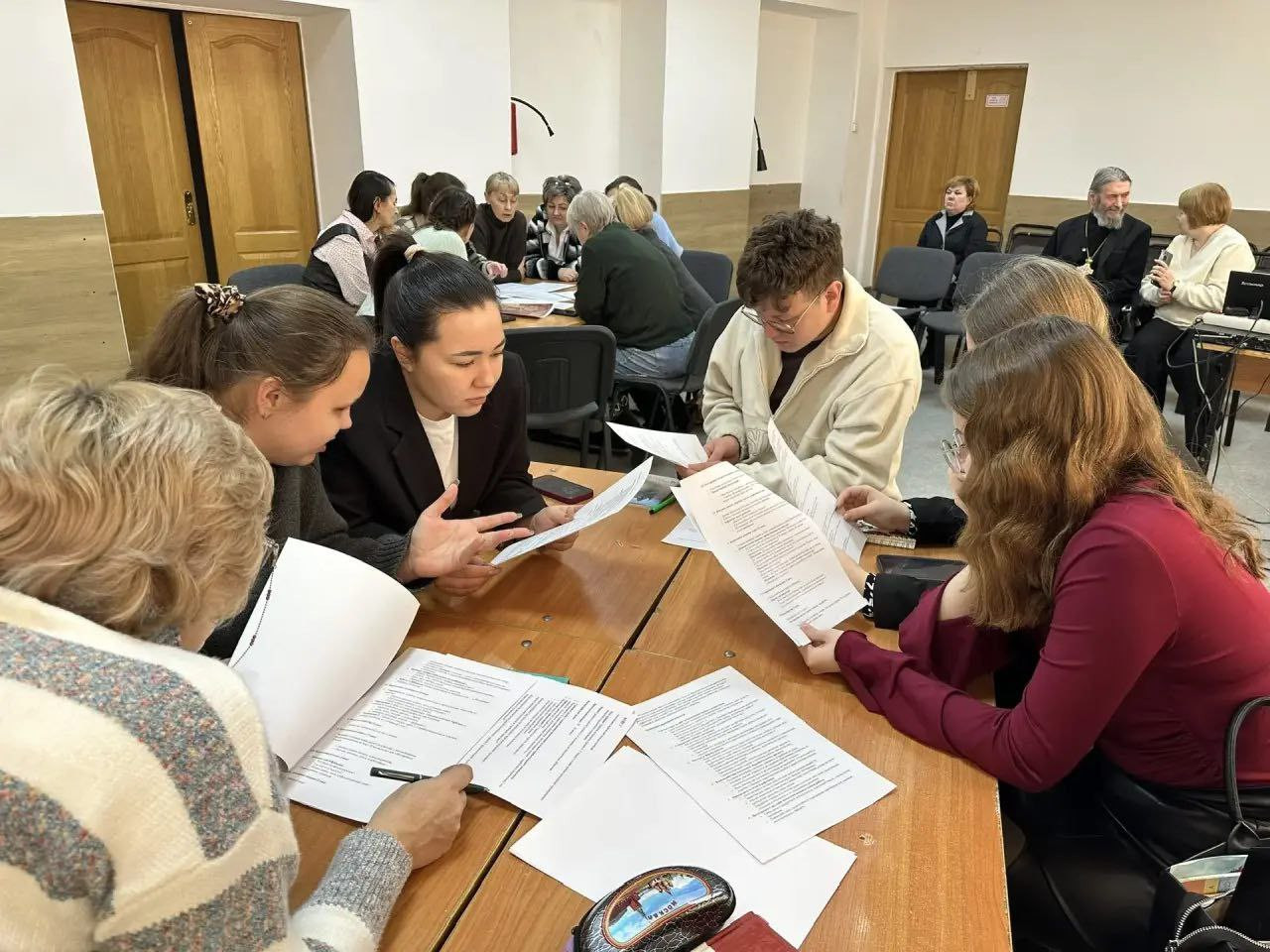 Практическая часть дискуссии прошла в форме групповой работы, во время которой педагоги анализировали конспекты занятий, предлагали варианты включения духовно-нравственного компонента в структуру занятия для ДОУ и школьного урока. Ключевыми вопросами дискуссии были: Какие основные трудности возникают при интеграции духовно-нравственного воспитания в учебный процесс? Какими способами можно повысить его эффективность? Какие методы работают с «трудными» родителями? Где найти ресурсы (время, методики, поддержку)? Участники разработали предложения для педагогов по поддержке духовно-нравственного воспитания в форме чек-листов, убедились в сложности, но необходимости включения духовно-нравственного компонента в содержание урока/занятия, получили профессиональные советы по работе с родителями, отрицающими и непринимающими «нравственные уроки», создали личный «набор инструментов» для работы в форме методов и приёмов.Итоги дискуссии можно свести к трём ключевым выводам: необходимость интеграции традиционных ценностей в образовательный процесс; важность взаимодействия семьи, школы и общества; потребность в разработке новых методических подходов. В ходе состоявшейся дискуссии протоиерей Павел Матвеев обратил внимание на то, что Духовно- нравственное воспитание в образовании необходимо строить на основании традиционной для большей части народа России православной вере. Также он обратил внимание на недопустимость неозыческих проникновений в практику воспитательной работы образовательных учреждений. В заключение дискуссионной площадки организаторы выражают надежду, что поднятые вопросы станут отправной точкой для системных изменений в сфере духовно нравственного воспитания.
