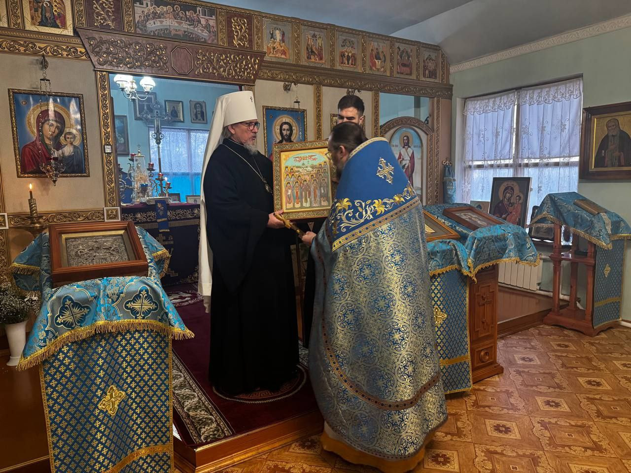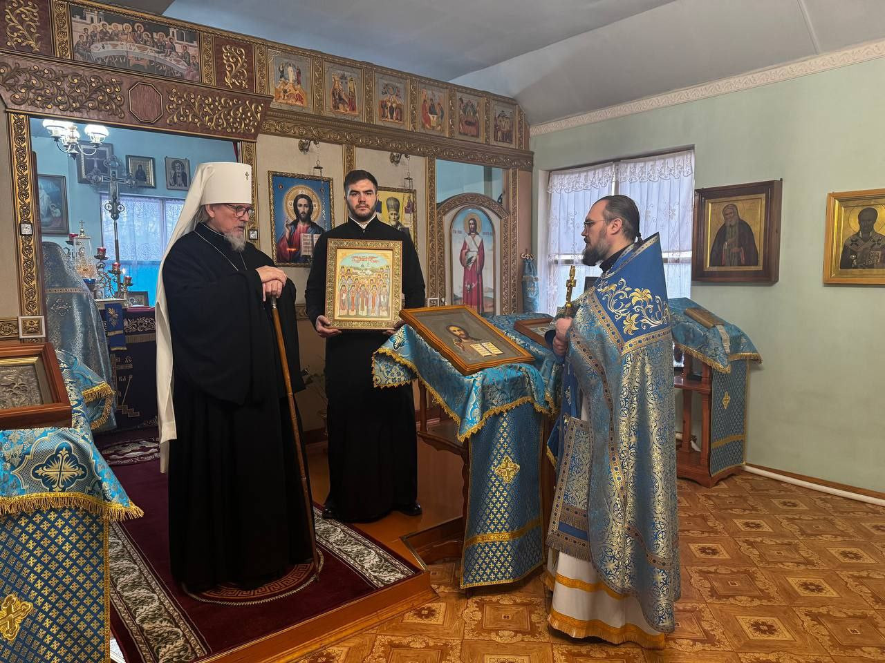 В памятование о сегоднешнем празднике в честь иконы Божией Матери "Знамение", владыка митрополит вручил наместнику монастыря икону Собора Глинских преподобных старцев.