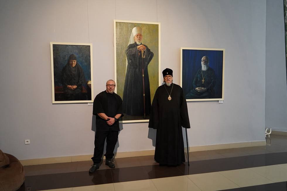 В экспозиции представлено более 70 произведений, среди которых портреты митрополита Читинского и Петровск-Забайкальского Димитрия, иеромонаха Алипия (Федотова) и инокини Феоктисты (Абрамовой), написанные художником Андреем Максимовым.