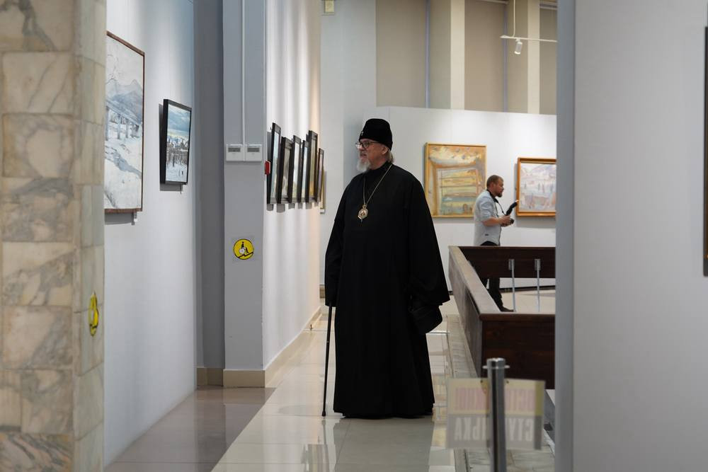 Владыка Димитрий, о. Алипий и инокиня Феоктиста посетили открытие выставки.
