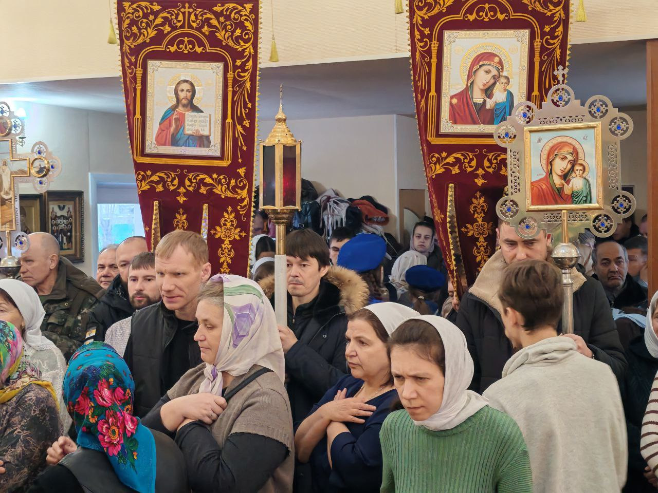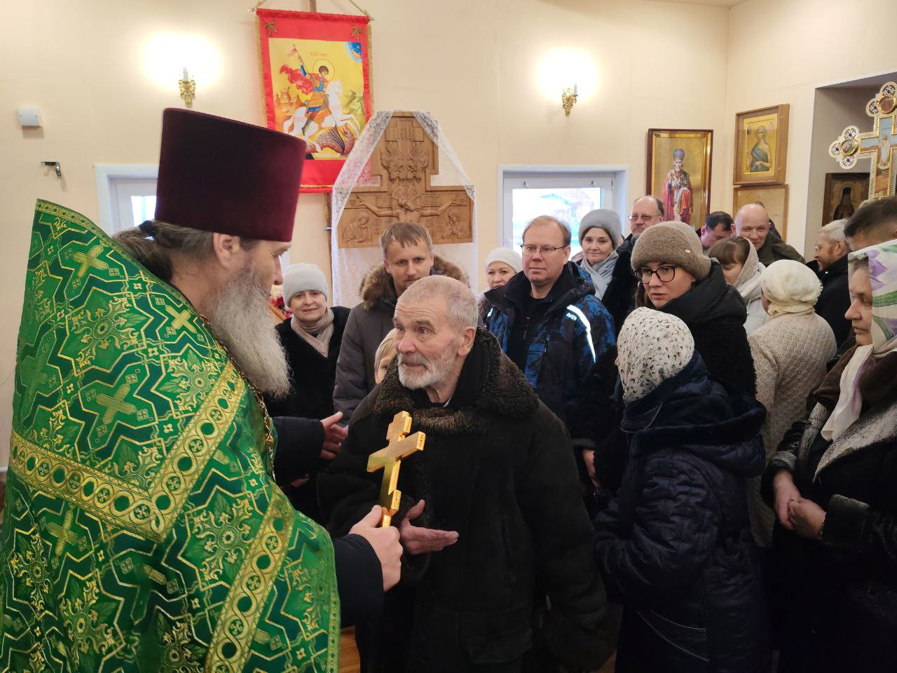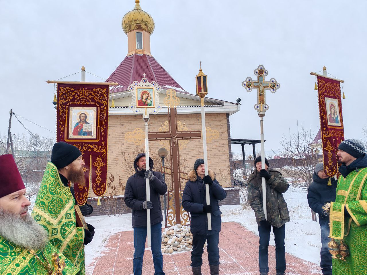 По заамвонной молитве был совершен крестный ход вокруг храма с молебным пением праведному Иоанну Кронштадтскому, а после было провозглашено многолетие Святейшему Патриарху Московскому и всея Руси Кириллу, митрополиту Читинскому и Петровск-Забайкальскому Димитрию, богохранимой стране нашей Российской, властем, воинству и народу, строителям, благоукрасителям, жертвователям, труждающимся, поющим и молящимся святаго храма сего.