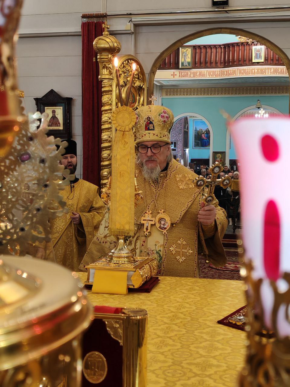 Его Высокопреосвященству сослужили клирики собора: