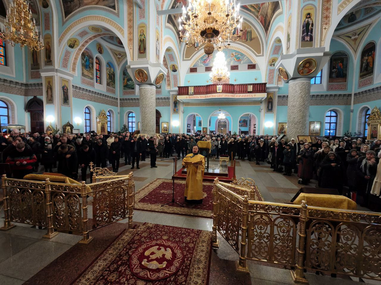 4 января 2026 года, в Неделю 30-ю по Пятидесятнице, пред Рождеством Христовым, святых отец. Предпразднство Рождества Христова. День памяти великомученицы Анастасии Узорешительницы, митрополит Читинский и Петровск-Забайкальский Димитрий возглавил Божественную литургию в кафедральном соборе Казанской иконы Божией Матери города Читы.