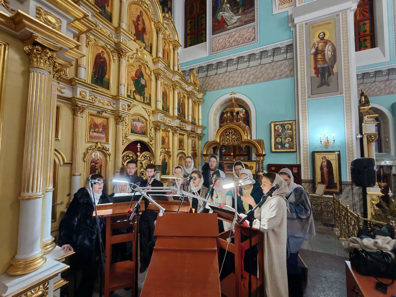 Богослужебные песнопения исполнил архиерейский молодёжный хор Казанского кафедрального собора под руководством Татьяны Медведевой.