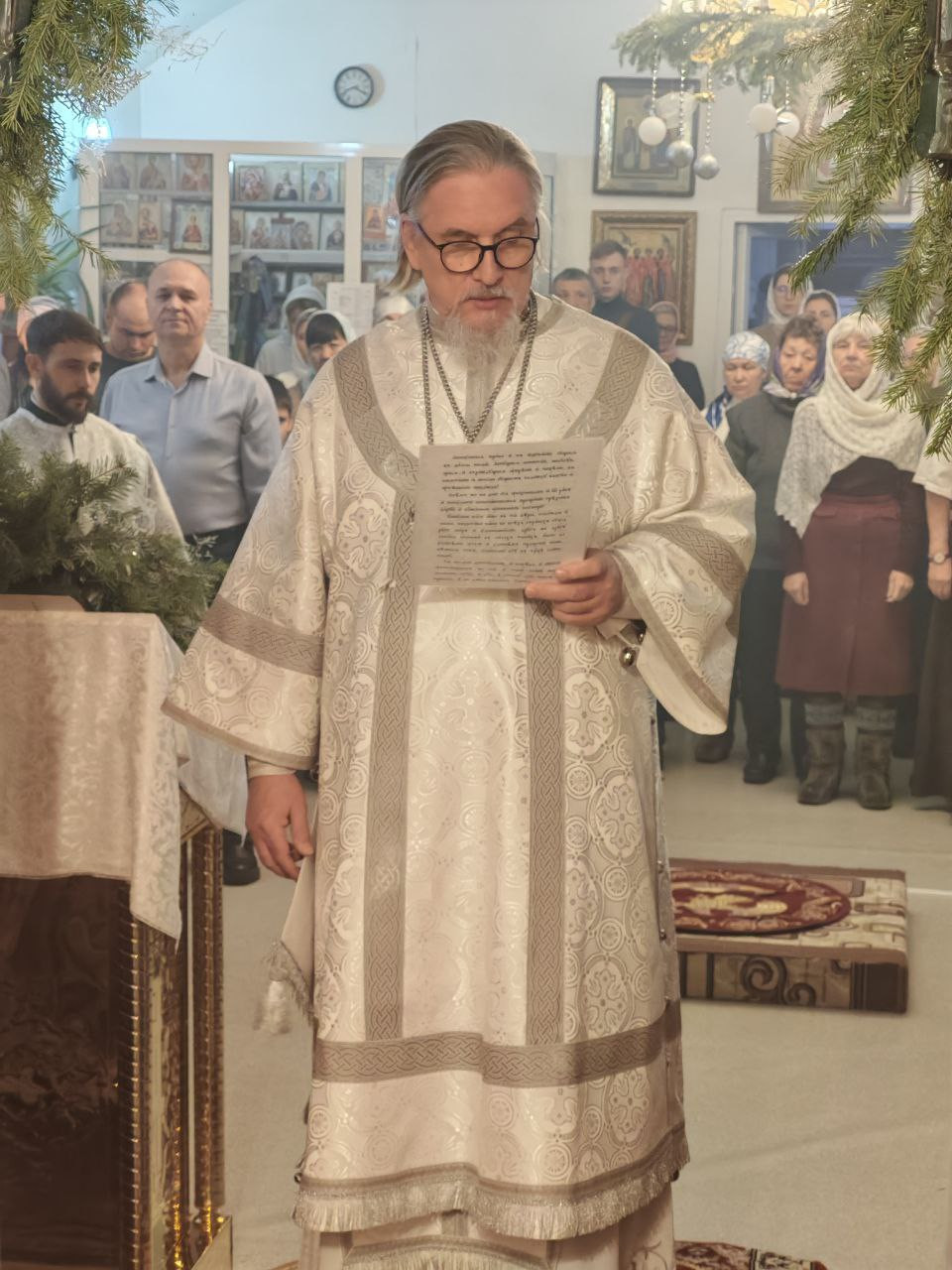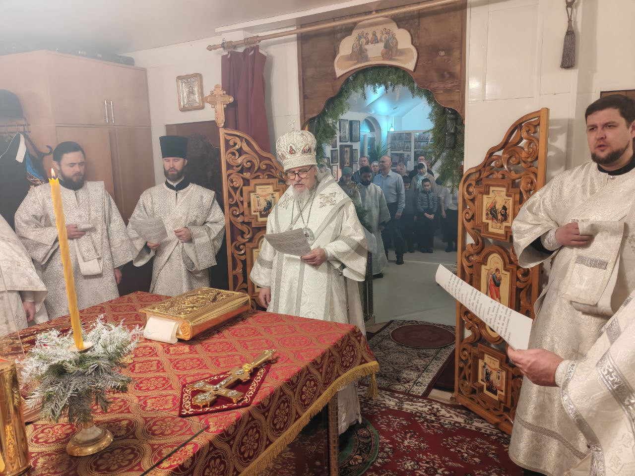 Рождественское обращение с поздравлением Светлого Рождества Христова от митрополита Читинского и Петровск-Забайкальского Димитрия огласил иерей Антоний Горбунов.
