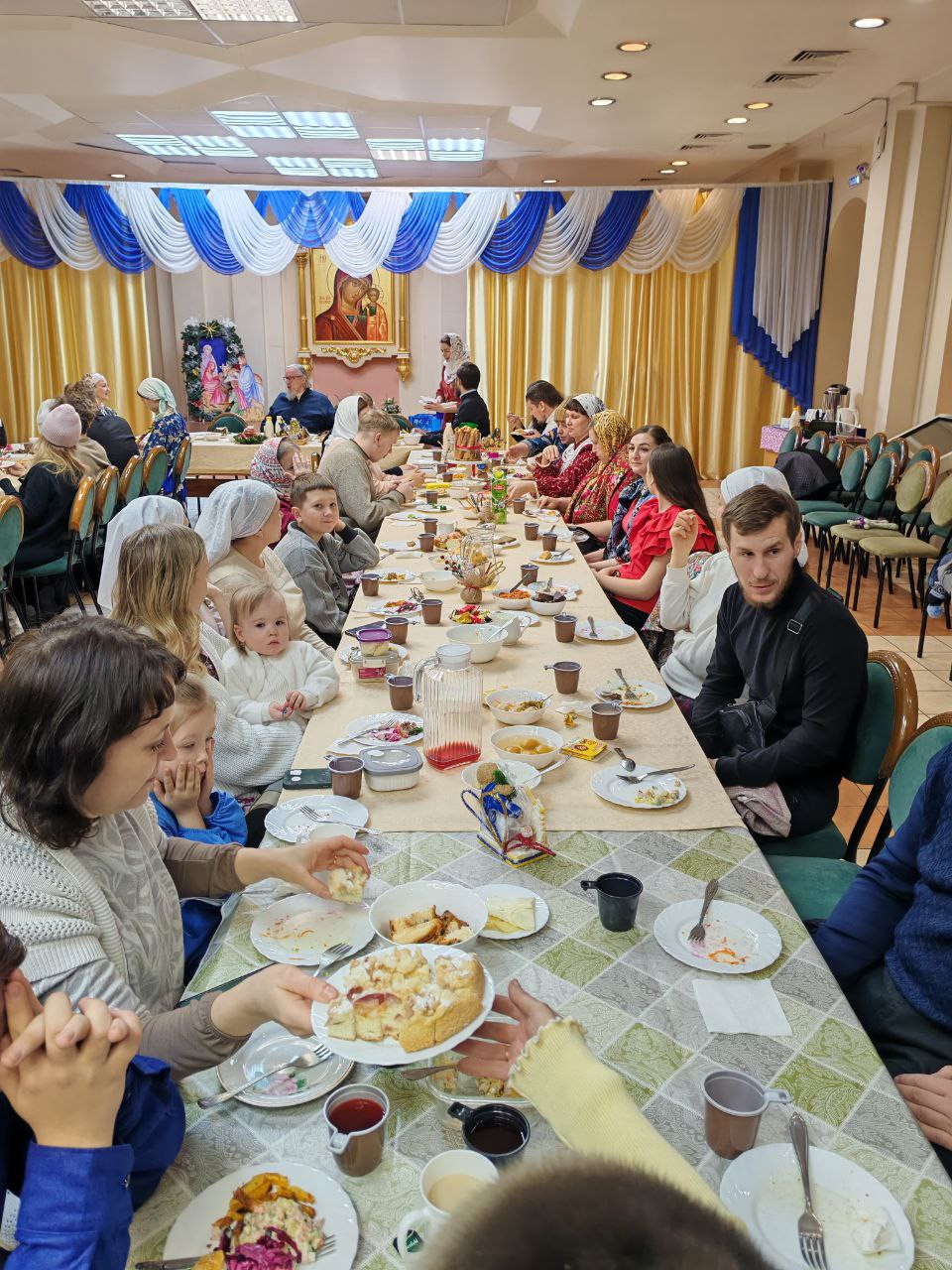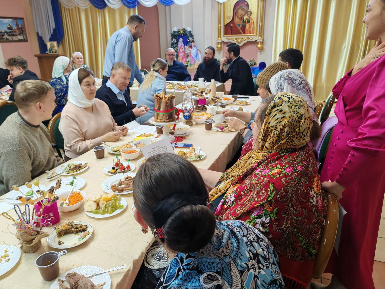 Общая трапеза стала логическим продолжением праздничного богослужения, явив собой пример истинного христианского единства и любви. В неформальной обстановке прихожане получили редкую возможность лично пообщаться с архипастырем и духовенством, разделив общую радость о пришедшем в мир Спасителе. Такие встречи не только укрепляют общину, но и согревают сердца, оставляя в душе светлое чувство большой и дружной семьи, объединенной верой и верностью церковным традициям.
