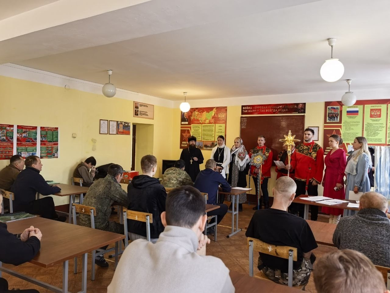 Иерей Валерий Шаферов обратился к военнослужащим с праздничным словом, разъяснив духовный смысл и значение Рождества Христова. После, прихожане собора исполнили для бойцов рождественские колядки. Всем желающим раздали тексты песнопений, что позволило военнослужащим присоединиться к общему хору и спеть колядки вместе с гостями.