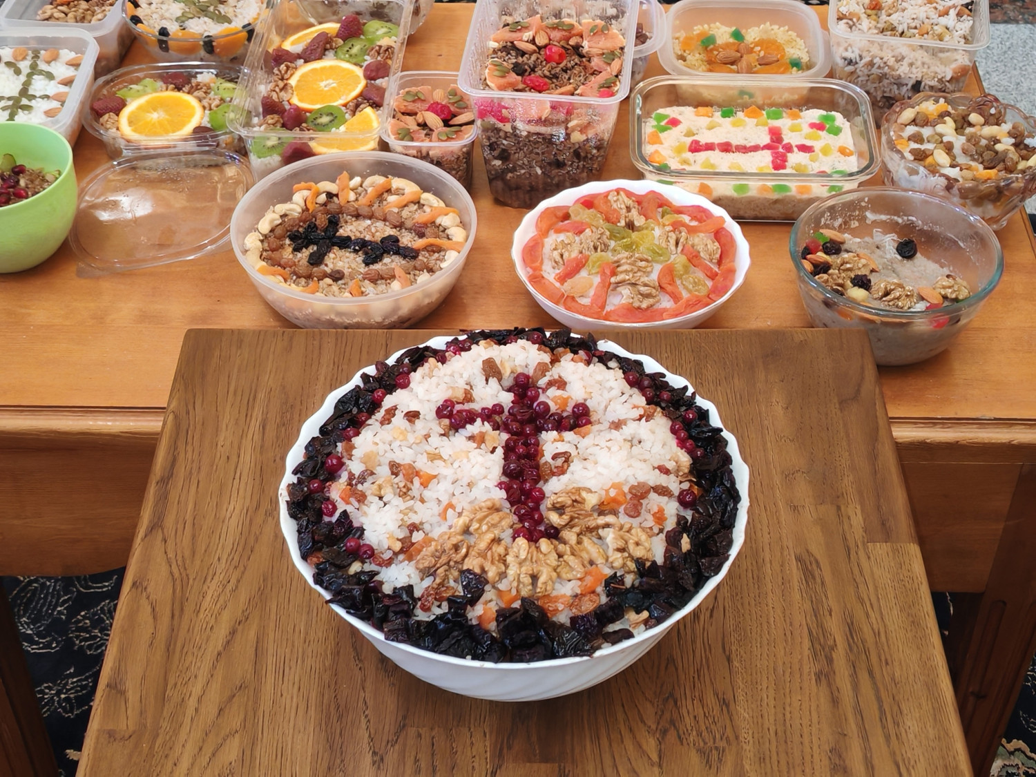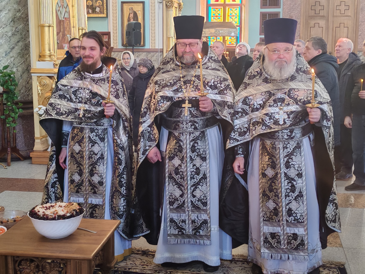 По заамвонной молитве был совершен молебен великомученику Феодору Тирону, в завершении которого была прочитана молитва на освящение колива.