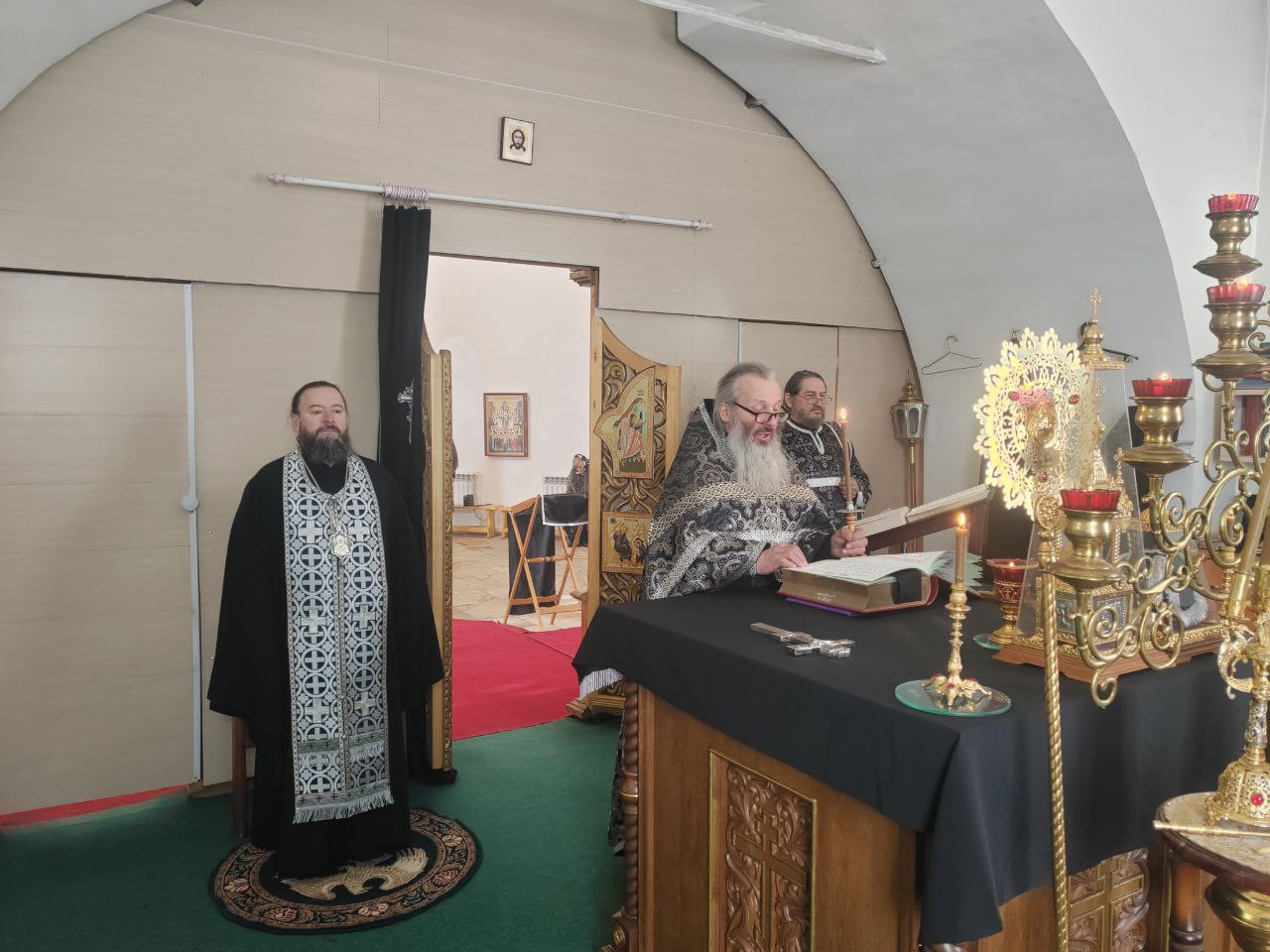 Утром и вечером во вторник 2-й седмицы Великого поста, 3 марта 2026 года, епископ Нерчинский и Краснокаменский Макарий молился за уставными богослужениями в кафедральном соборе Воскресения Христова в Нерчинске.